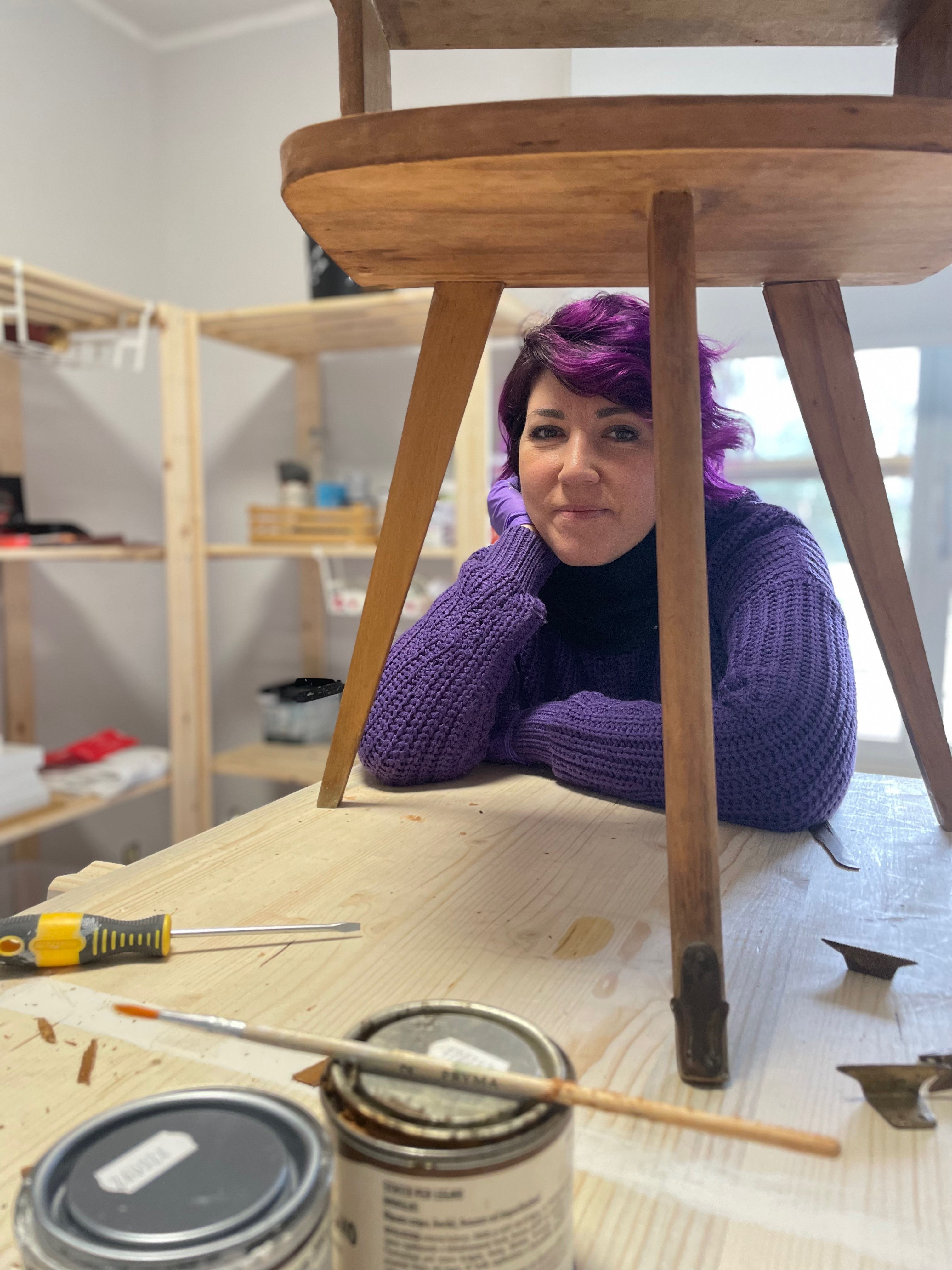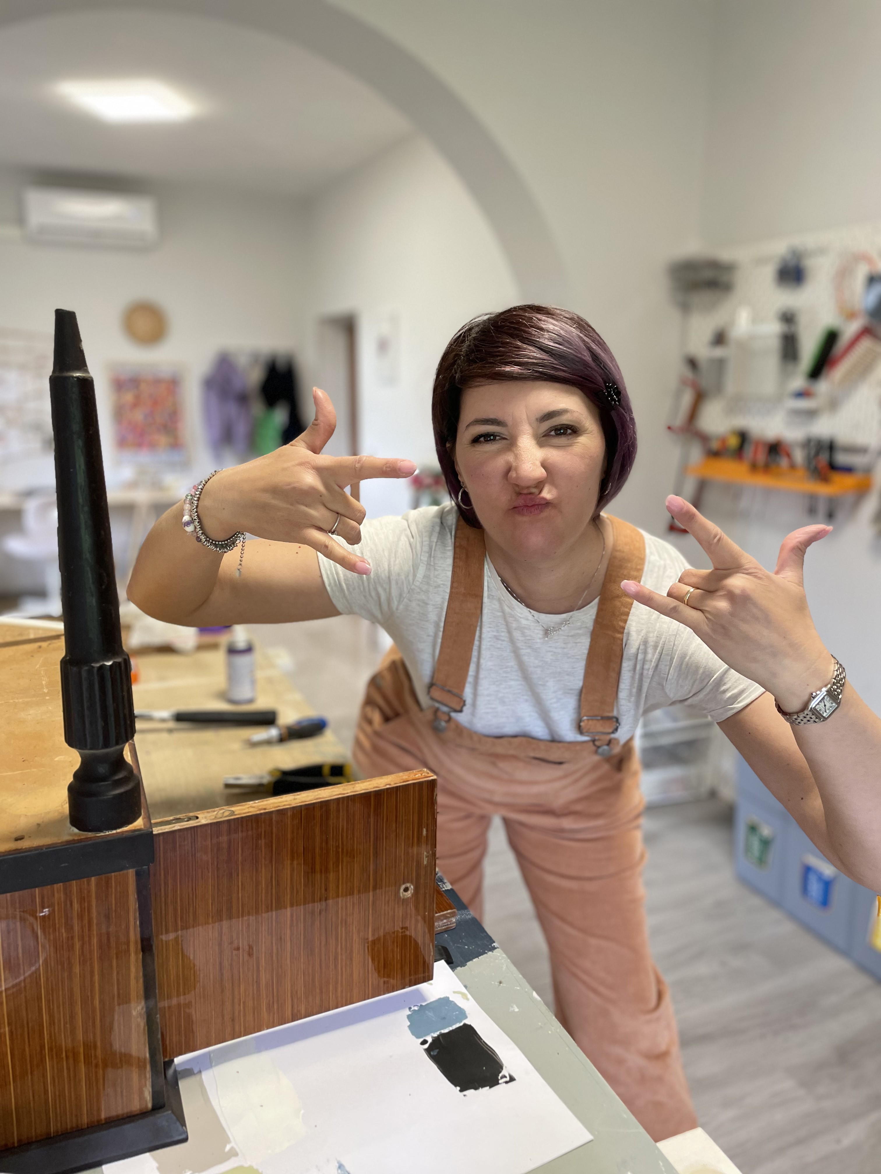 Non è solo uno spazio di lavoro, è una bottega dell’anima: accoglie mobili dimenticati, oggetti rotti, idee storte. Qui dentro si aggiusta, si reinventa, si ascolta. Ogni pezzo parla, ogni cicatrice racconta.