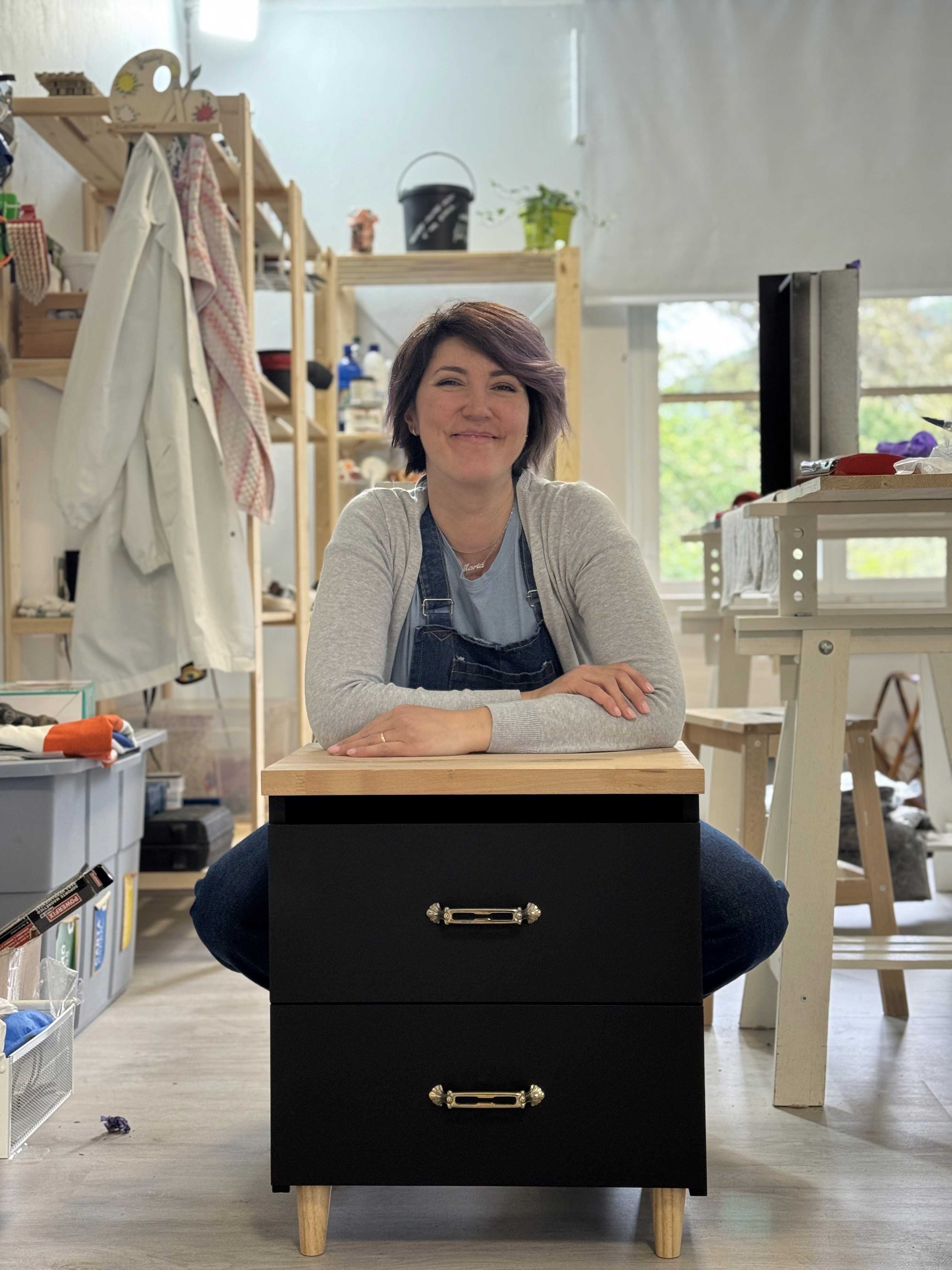 La finitura a spruzzo garantisce una superficie opaca, vellutata, che non riflette: assorbe, come fanno le cose vere. Le gambe e il top, lasciati in legno naturale con cera, danno calore e carattere. E poi ci sono i cassetti, che nascondono un lato tenero e inatteso. Perché, si sa, gli adolescenti veri i sentimenti li tengono chiusi dentro, ma quando li scopri, sono profondi.